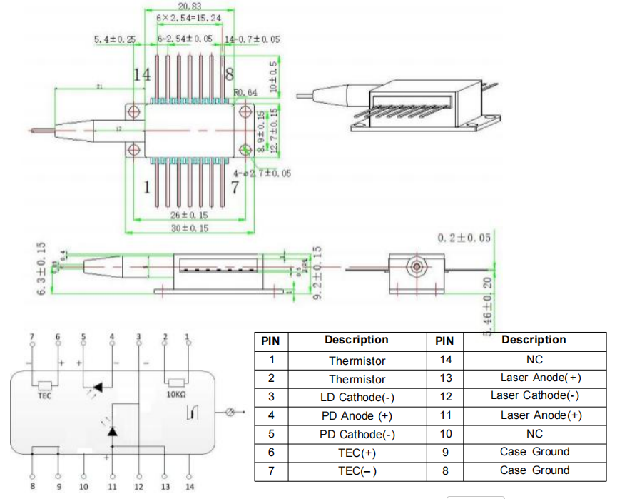760nm 10mW laserska dioda DFB za modul za zaznavanje kisika O2 je stroškovno učinkovita, zelo koherentna laserska dioda. Laserski diodni čip DFB je zapakiran v industrijsko standardno hermetično zaprto 14-pinsko metuljasto ohišje z vgrajenima TEC in PD.